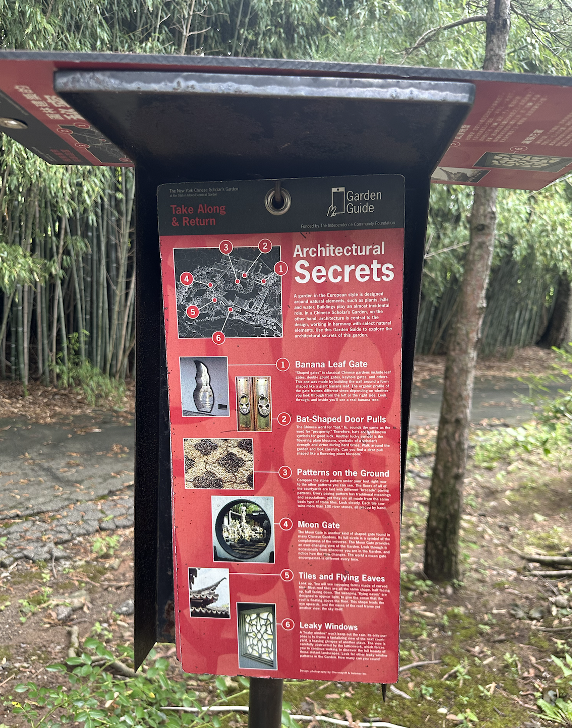 “All the [garden’s] architectural components…were fabricated in Suzhou, China, including roof and floor tiles, columns and beams, doors and windows, bridges and paving materials.